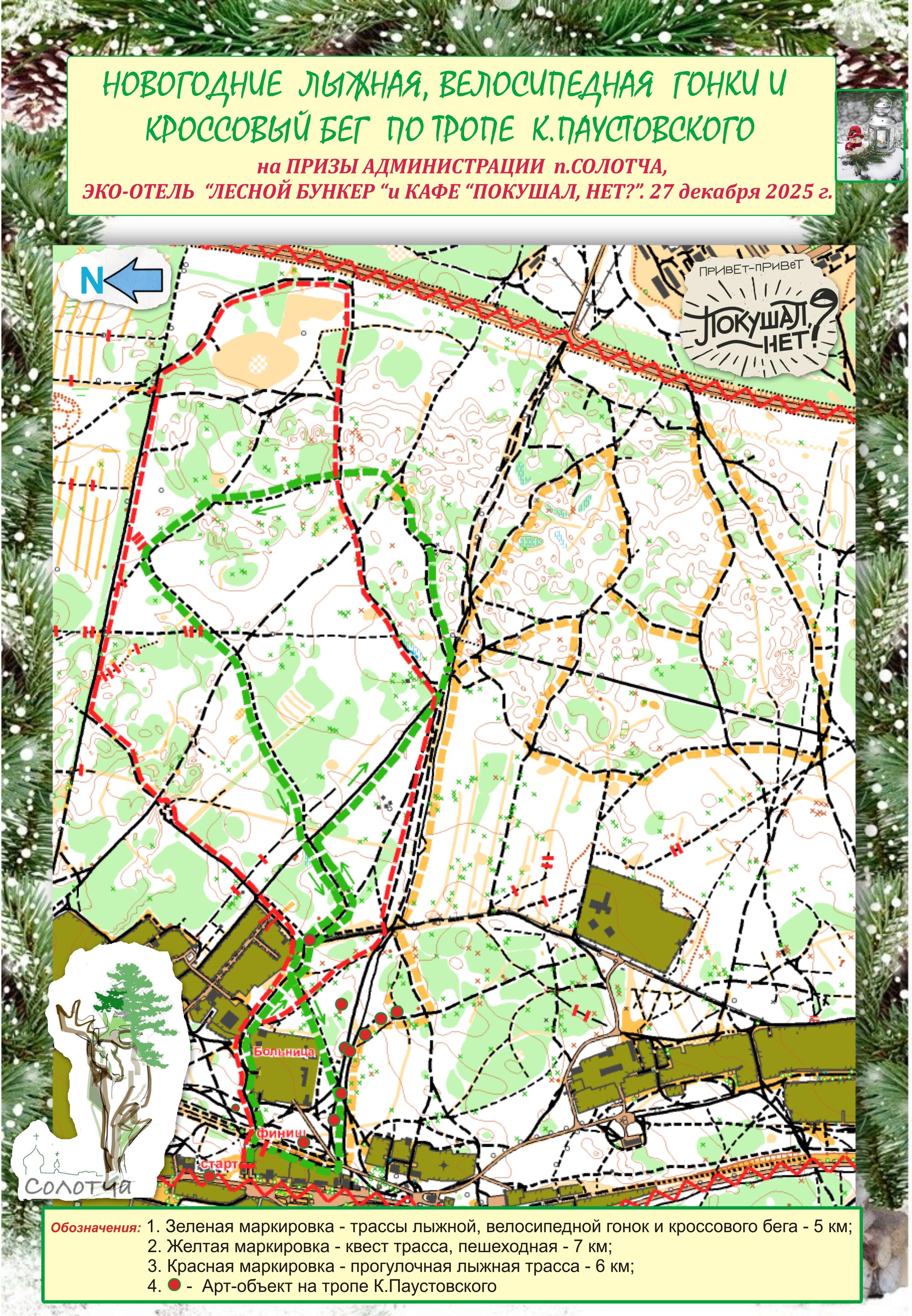 Новогодние лыжная, велосипедная гонки и кроссовый бег по тропе К.Паустовского на призы Администрации п.Солотча, ЭКО-ОТЕЛЬ "ЛЕСНОЙ БУНКЕР" и КАФЕ "ПОКУШАЛ, НЕТ?"